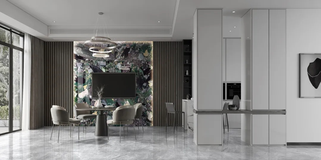 巖板的家居應用極為廣泛,不僅能夠上墻下地,還能夠應用于餐臺茶幾家具、廚衛空間臺面、門板等,巖板幾乎無所不能的,超乎想象的滿足高標準的應用要求。